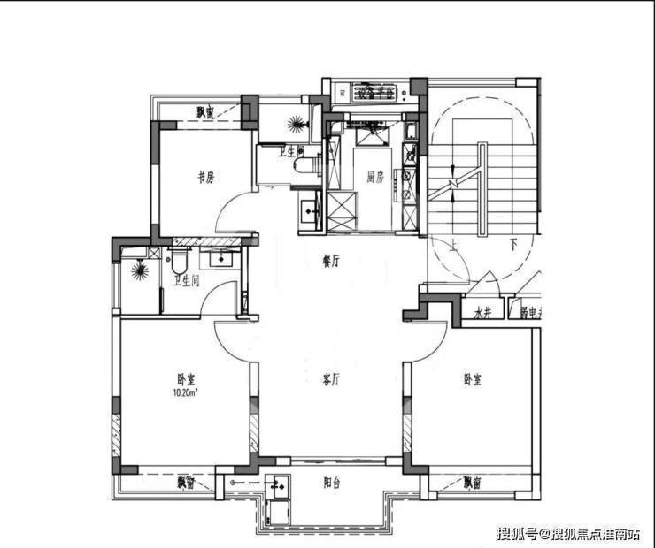一梯两户,层高3.05米,相当于99竖厅户型的缩小版.南北直通,全卧飘窗,南白整体面宽约9.75米,其中客厅面宽约3.55米,主卧面宽约3.2米